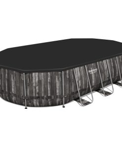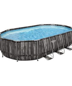 Piscina cu cadru metalic ovala Bestway 610x366x122 cm + pompa de filtru 5678 l/h, scara, copertina (5611R).
